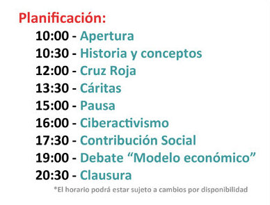 Por la mañana se podrá asistir a las conferencias de organizaciones como Cruz Roja y Cáritas, por la tarde se organizará un debate sobre 'El Modelo económico'.